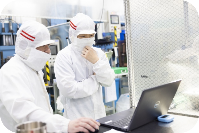 ISO14644-1 Class 7 (FS209E 10,000)のクリーンルームにて組立・溶着をご提案が可能。工程受託などもご相談ください。